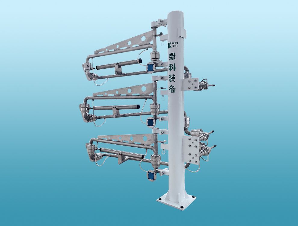 無(wú)氮?dú)獗Wo(hù)裝置裝卸車臂:裝卸車臂由液相臂、氣相臂、增壓臂組成。卸車臂的轉(zhuǎn)向閥采用特殊密封,保證空氣不會(huì)進(jìn)入轉(zhuǎn)向閥的內(nèi)部,避免了出現(xiàn)轉(zhuǎn)向閥結(jié)冰無(wú)法轉(zhuǎn)動(dòng)的現(xiàn)象。該裝卸車臂不用氮?dú)獗Wo(hù)系統(tǒng),減少了設(shè)備投資和后期運(yùn)行過(guò)程中購(gòu)買氮?dú)庀牡馁M(fèi)用。